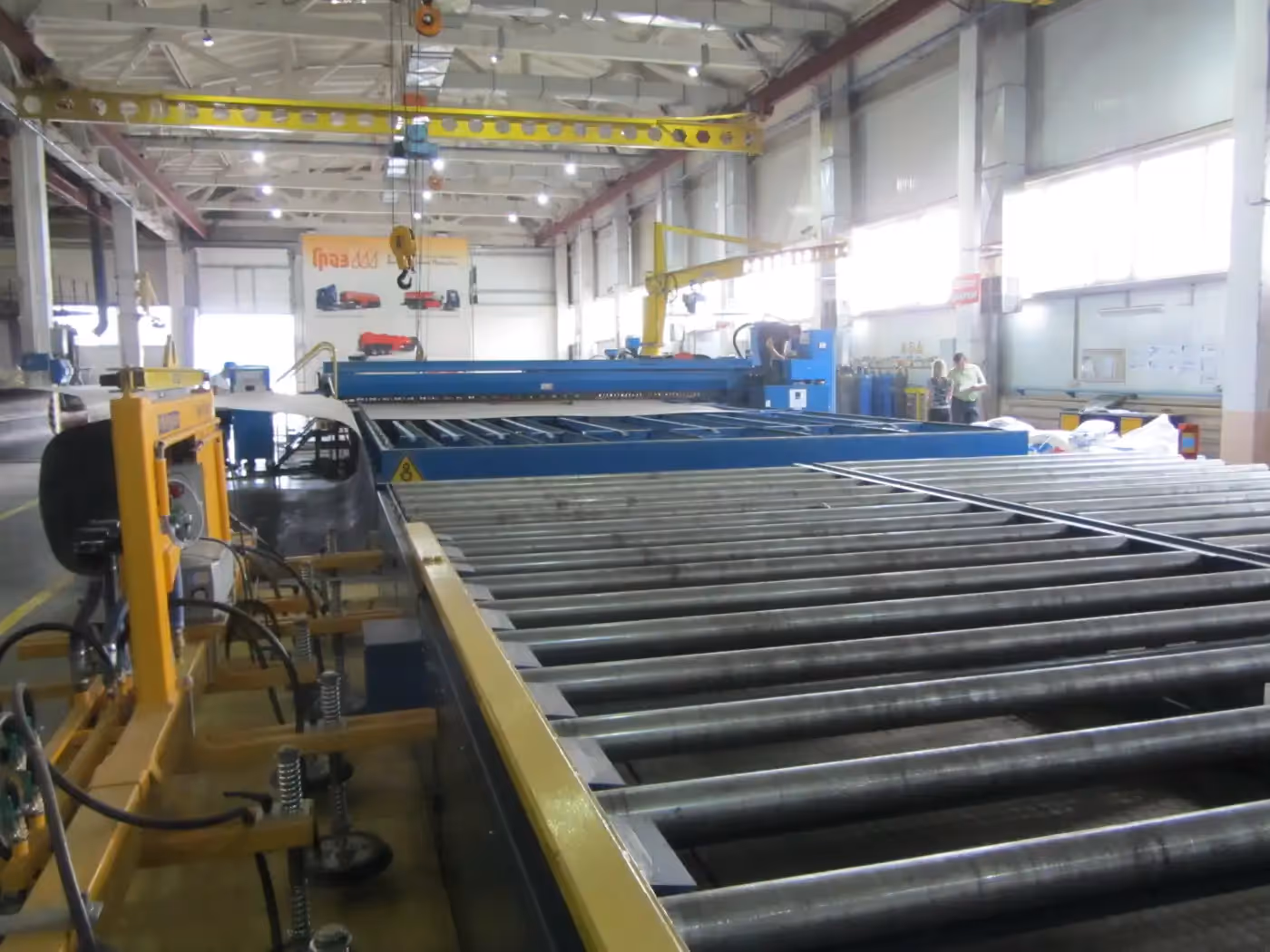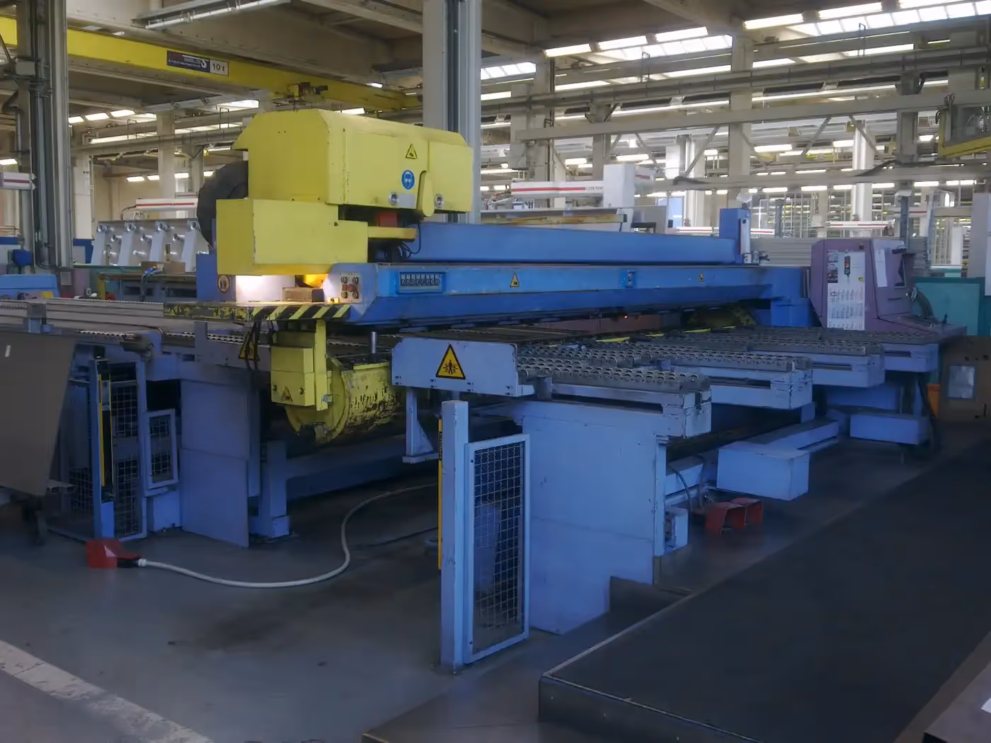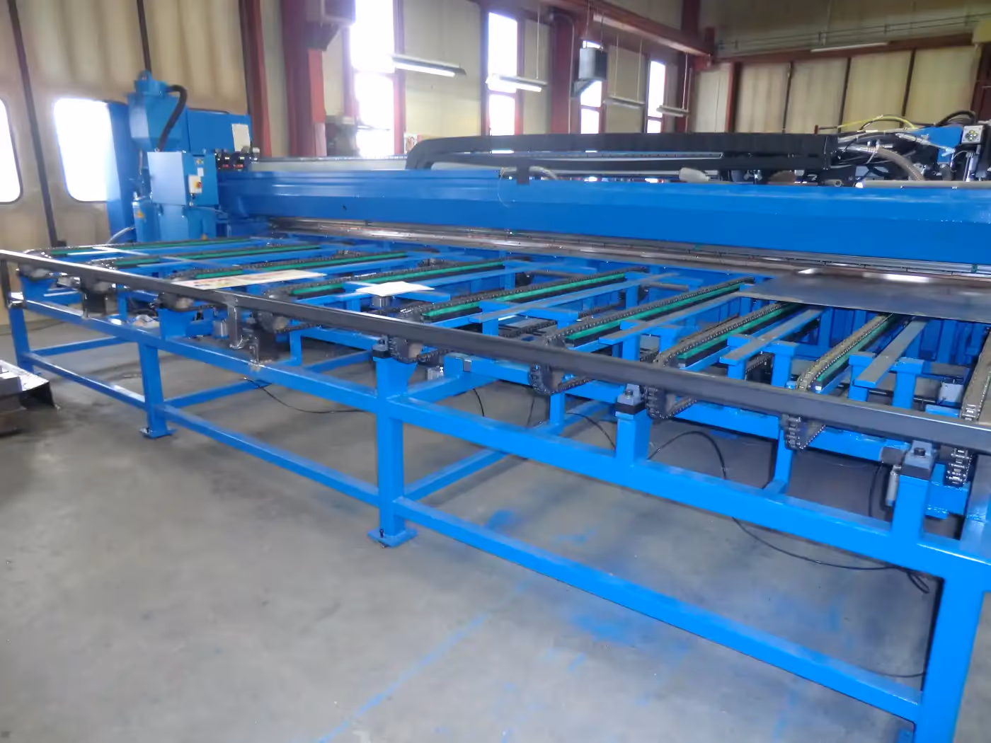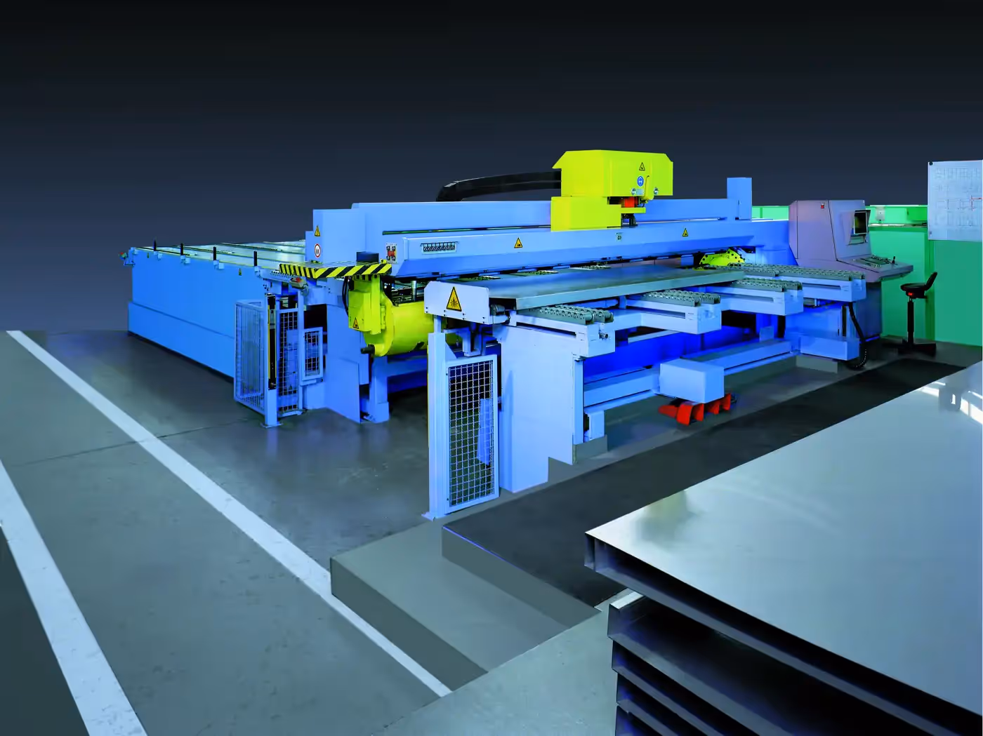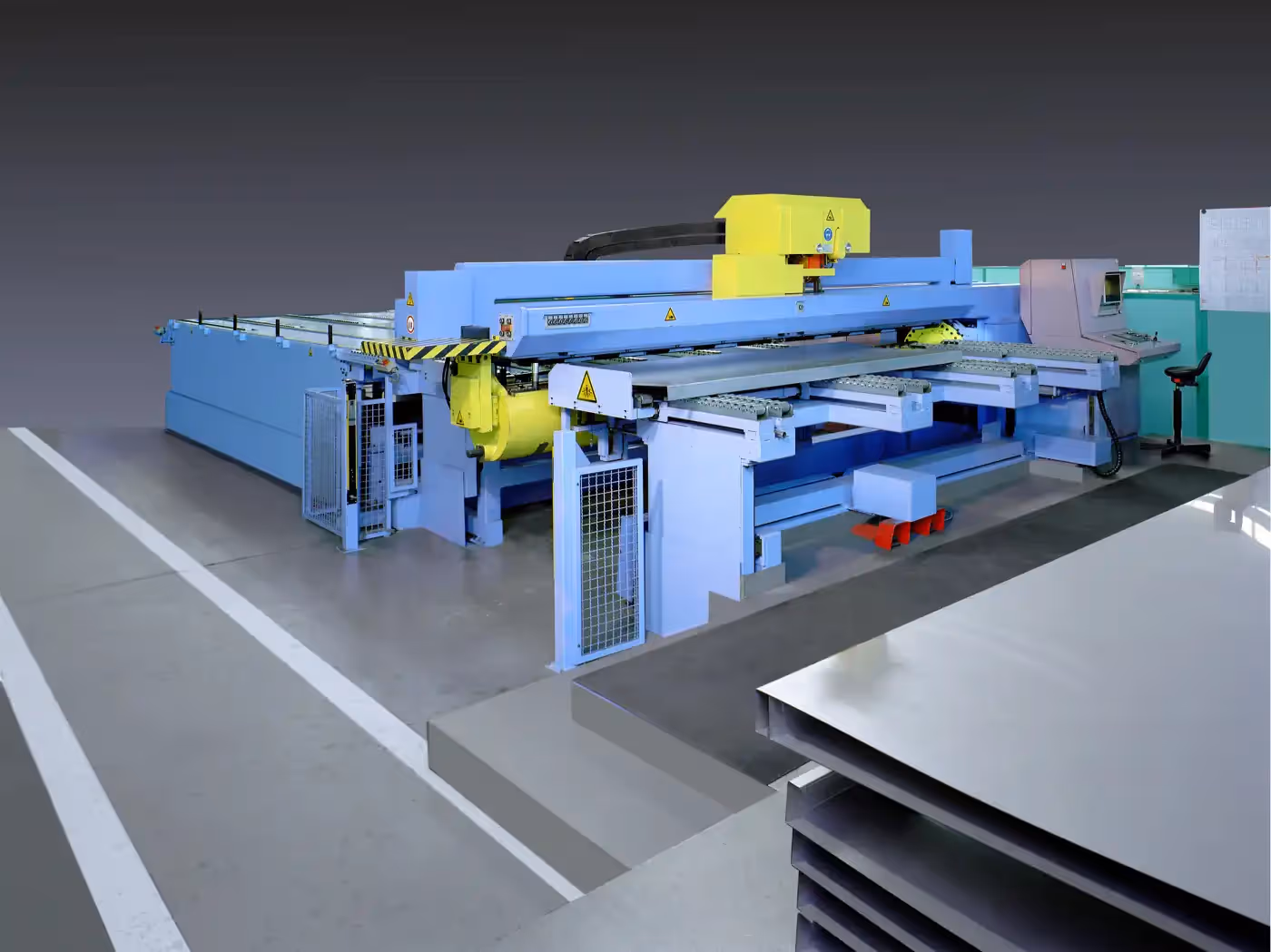 This fillet welding machine is equipped with an integrated conveyor system that automatically positions components and thus supports consistent welding conditions. The design is particularly suitable for mass production of sheet metal parts with recurring geometry.