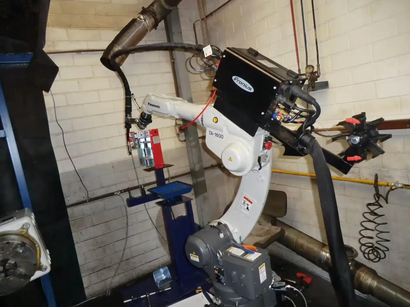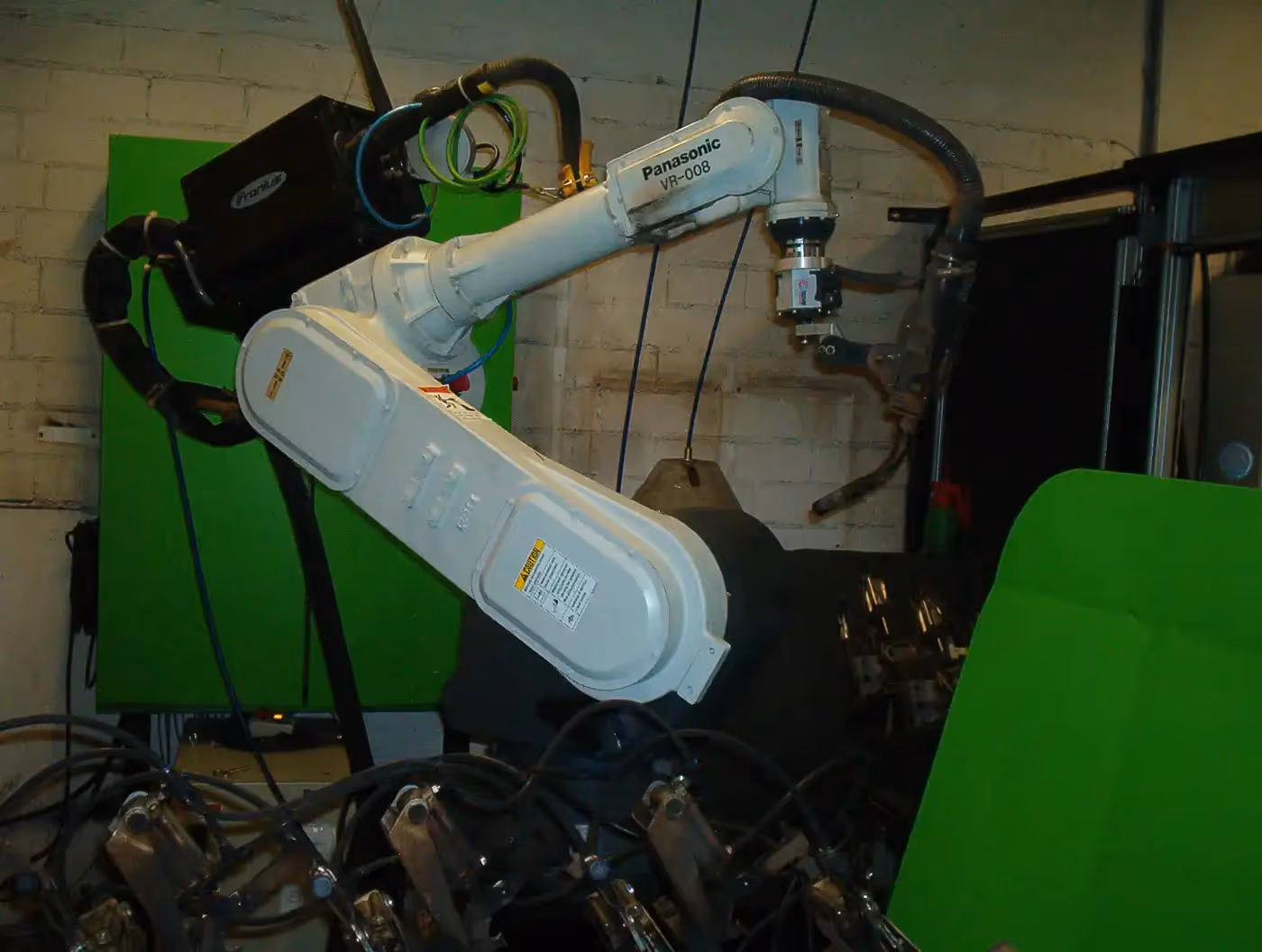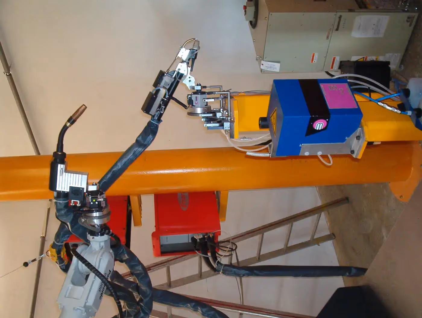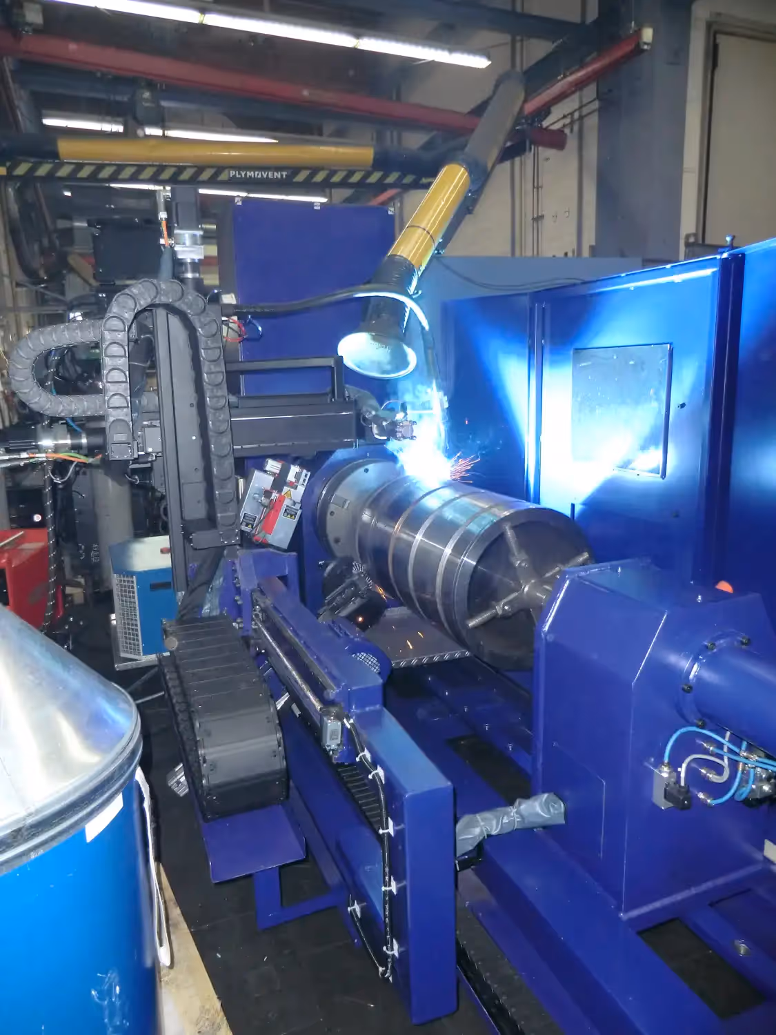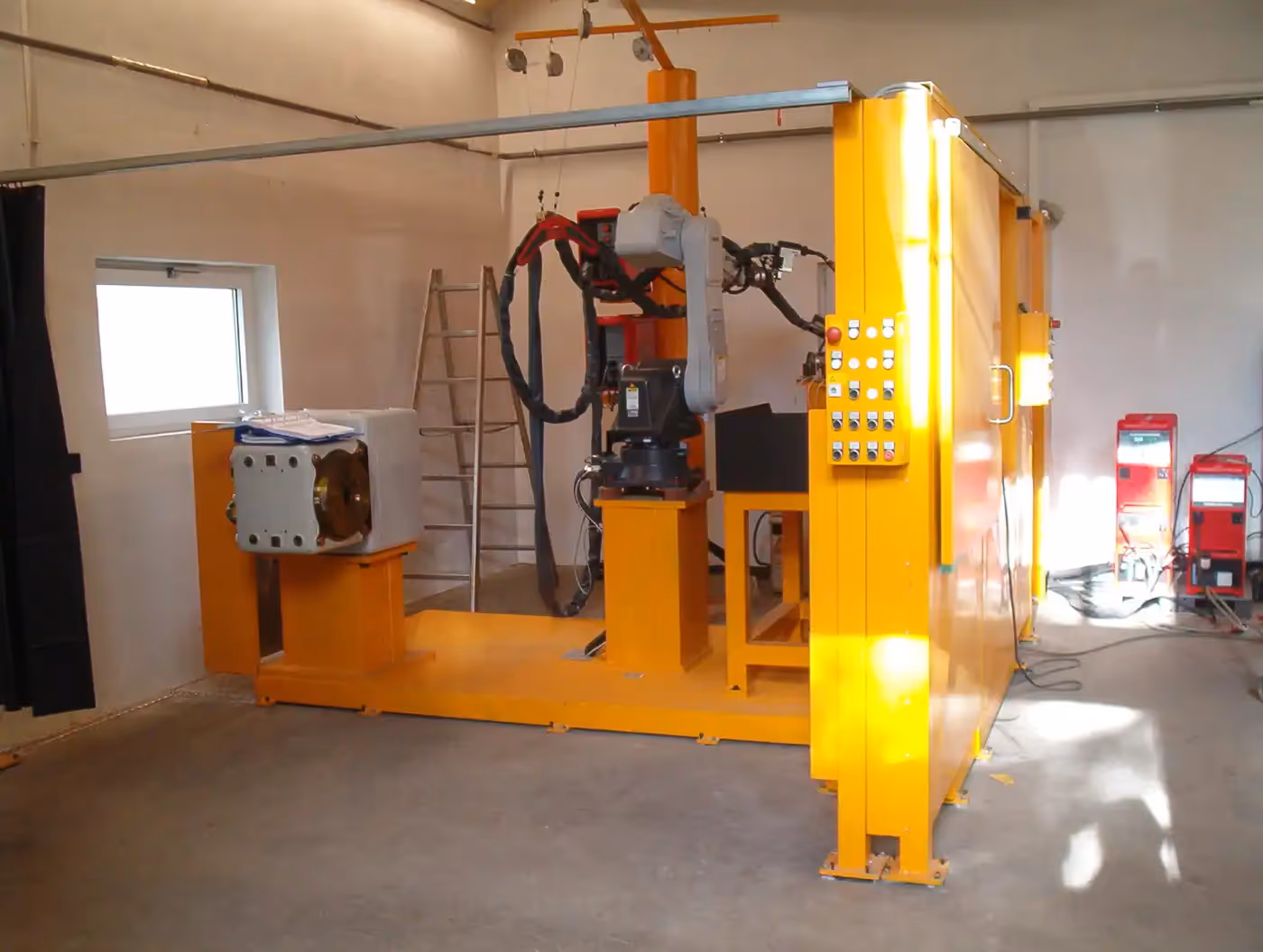 Дополнительная ось вращения позволяет создавать сложные круглые швы или сварку различной геометрии. Компоненты передаются с помощью вращающегося устройства роботу, который адаптивно управляет процессом сварки.
