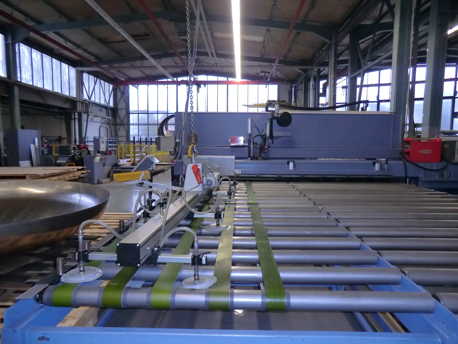 Für das automatisierte Fügen großformatiger Bleche mit integrierter Fördertechnik